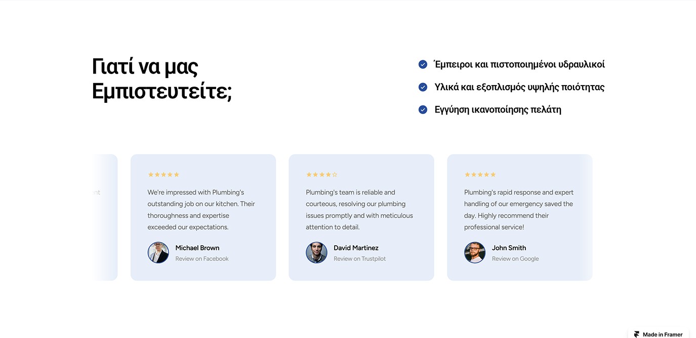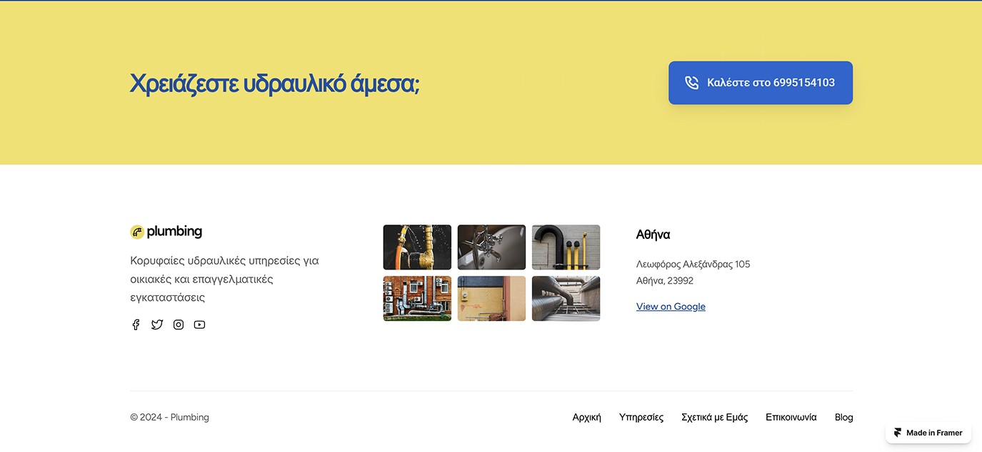 Project: Σχεδιασμός και ανάπτυξη ενός προτύπου ιστοσελίδας (template) στο Framer, ειδικά σχεδιασμένου για ελεύθερους επαγγελματίες υδραυλικούς.