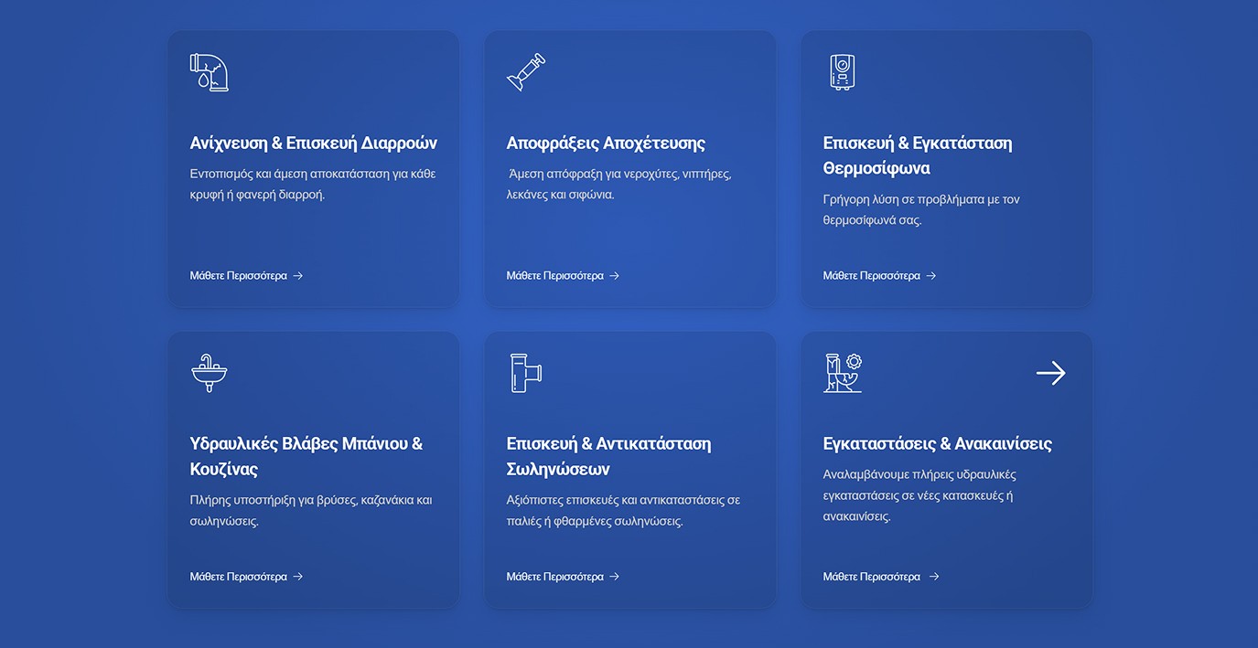 Δημιουργήσαμε μια δομή με ξεχωριστές σελίδες για κάθε υπηρεσία. Αυτό επιτρέπει τη στόχευση συγκεκριμένων λέξεων-κλειδιών (π.χ., "απόφραξη νεροχύτη Αθήνα"), αυξάνοντας δραματικά την ορατότητα στη Google.