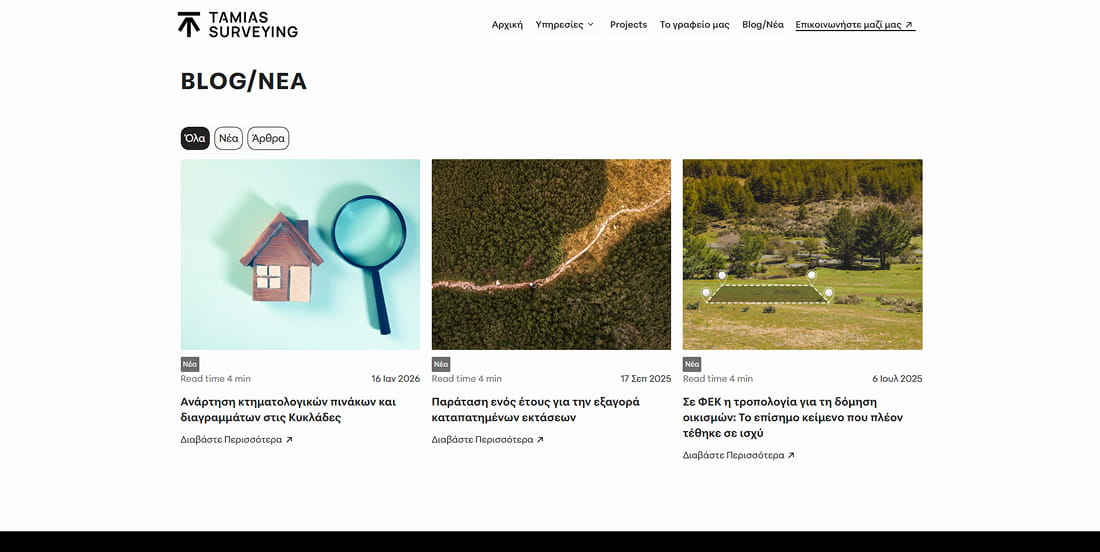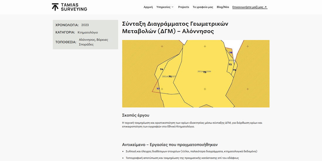 Σχεδιάσαμε και υλοποιήσαμε το website για τοπογραφικό γραφείο με 40+ χρόνια εμπειρίας. Minimal σκανδιναβικό design στο Framer με CMS για projects και blog, βελτιστοποιημένο για local SEO.